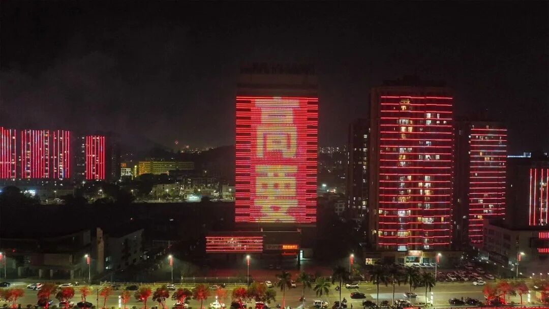 沿岸建筑同步亮起新春光影秀,