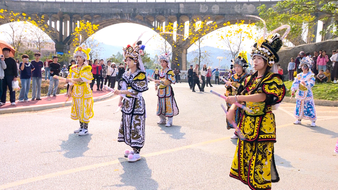 春节期间的罗平长岗坡锣鼓喧天,热闹非凡。来自汕头市濠江区河浦的潮馨女子英歌舞队身着特色服饰,手持彩色木槌,她们姿态英武、队形变换有序。激昂的鼓点与矫健的舞姿将喜庆气氛推向高潮,吸引了大批游客驻足拍照。“我们是从汕头市濠江区河浦过来这边的,想把英歌舞这种传统民俗文化带到这里,让更多人感受到它的魅力。长岗坡的景色很美,我们在表演过程中也感受到了本地村民的热情,希望通过这次演出能让更多人了解英歌舞,也让更多人知道罗平这个美丽的地方。”汕头河浦潮馨女子英歌舞队队员说。英歌舞是岭南民俗瑰宝,融戏剧、舞蹈、武术于一体,传递着奋进精神。这场表演不仅串联起两地的民俗情谊,更让群众在家门口领略到了国家级非遗的独特魅力。